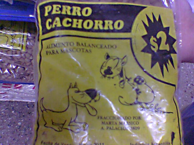 Joyitas de la góndola #12 Posted on 8/3/2010 por JuL Alimento balanceado «Perro Cachorro», Fraccionado por Marta Mársico. ¡Sólo 2 pesos!
